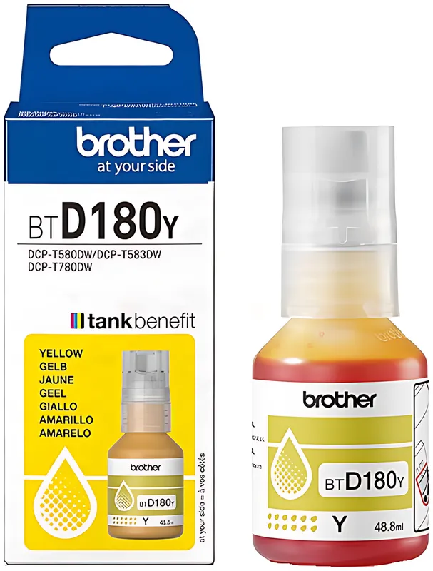 Brother BT-D180Y Tintenflasche gelb, 5.000 Seiten ISO/IEC 19752 48.8ml - Hohe Reichweite & Kosteneffizient.