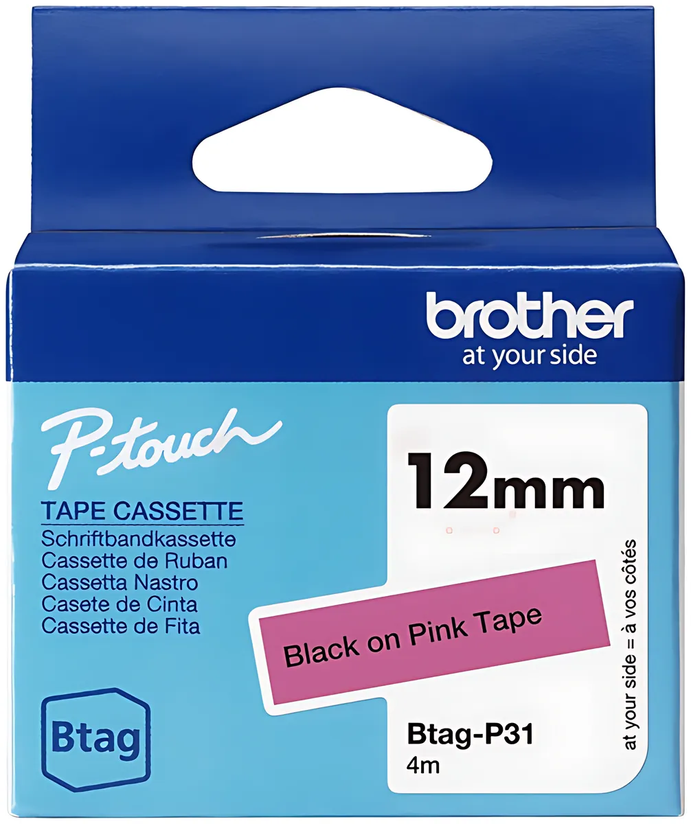 Brother BTAG-P31 DirectLabel-Etiketten schwarz auf rosa 12mm x 4m - Effizient & Langlebig.
