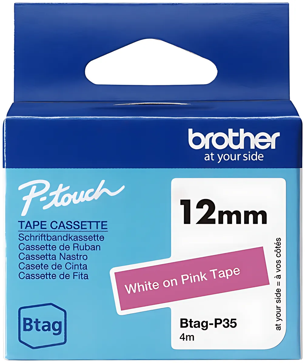 Brother BTAG-P35 DirectLabel-Etiketten weiss auf rosa 12mm x 4m - Effizient & Langlebig.