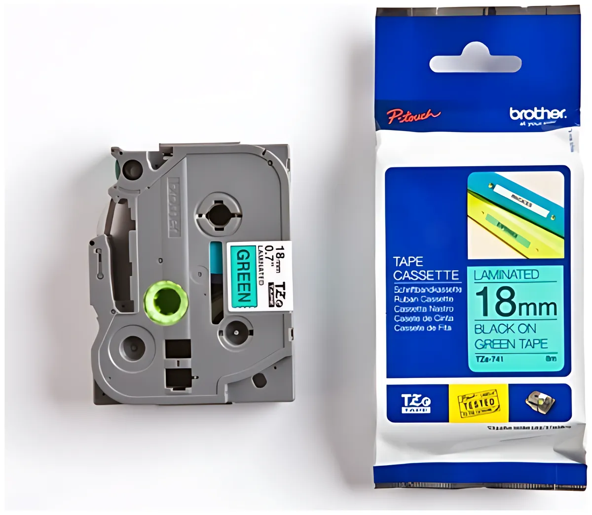 Brother TZE-741 DirectLabel schwarz auf grün Laminat 18mm x 8m