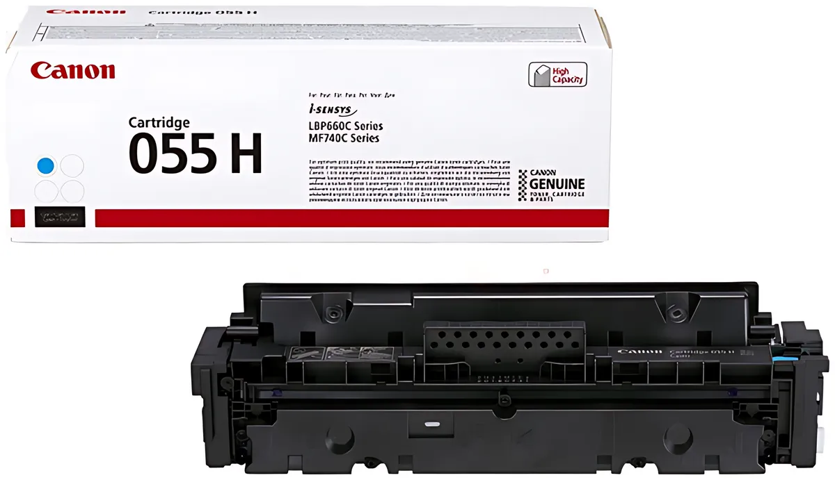 Die Herstellernummer Canon 055H / 3019C002 bezeichnet ein Verbrauchsmaterial des Typs Toner, das in bestimmte Drucker passt, darunter z. B. "Canon i-SENSYS LBP-660 Series", "Canon i-SENSYS LBP-662 Cdw" und "Canon i-SENSYS LBP-663 Cdw". Die Komponente hat die Farbe cyan und eine erwartbare Reichweite von 5.900 Seiten.