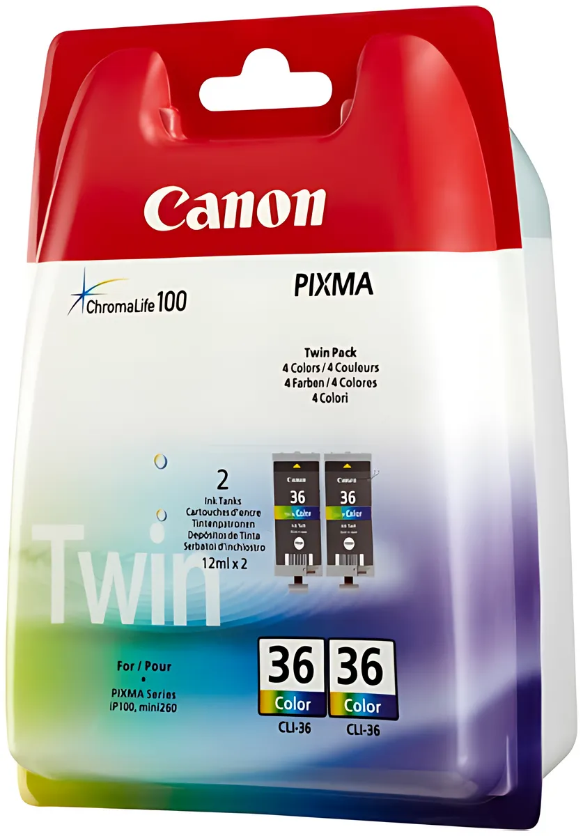 Canon 1511B025/CLI-36 Tintenpatrone color Doppelpack, 2x249 Seiten 12ml VE=2 - Hohe Kapazität für gestochen scharfe Ausdrucke.