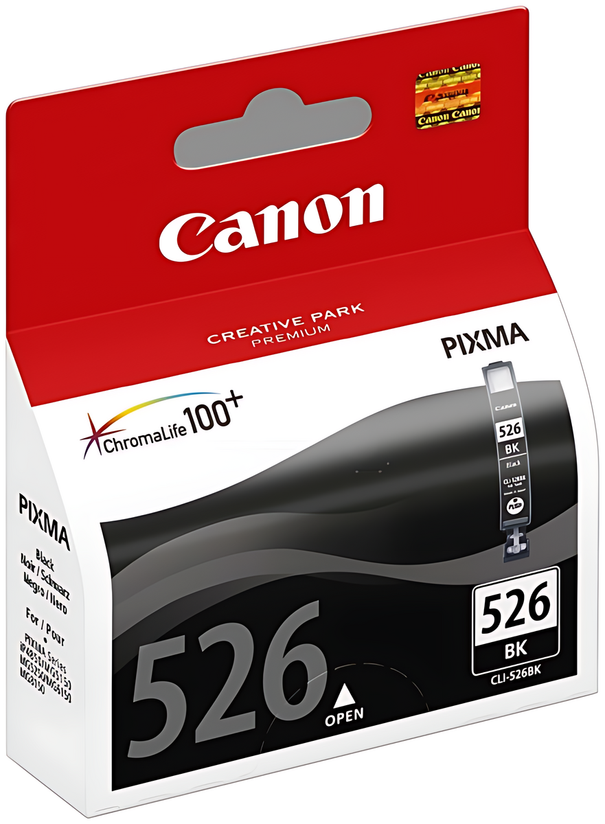 Canon 4540B001/CLI-526BK Tintenpatrone schwarz, 2.185 Seiten ISO/IEC 24711 555 Fotos 9ml - Hohe Kapazität für gestochen scharfe Ausdrucke.