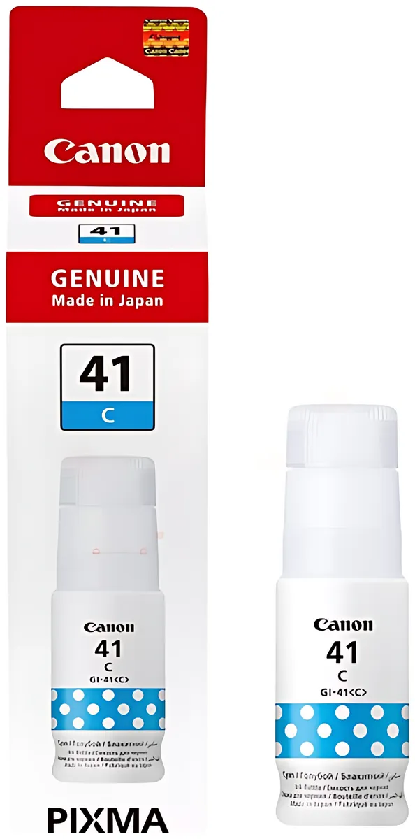 Die Tintenflasche GI-41SC / 5874C001, cyan, 4.400 sorgt für brillante Farben und gestochen scharfe Ausdrucke. Dank der sparsamen Formel drucken Sie zu günstigen Kosten von nur 0,32 ct pro Seite.