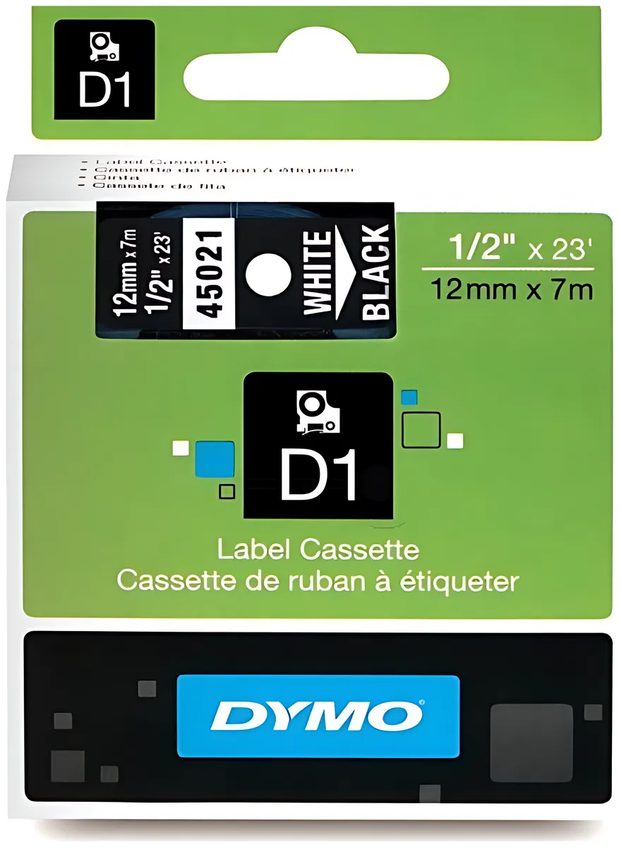 Dymo 45021/S0720610 DirectLabel-Etiketten weiss auf schwarz 12mm x 7m - Effizient & Langlebig.