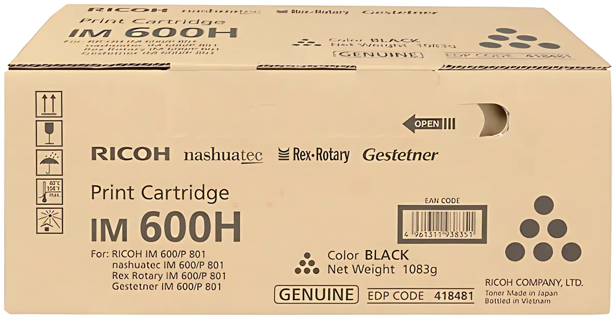 Der hochwertige Toner IM600 / 418478, schwarz, 25.500 sorgt für gestochen scharfe Ausdrucke mit langer Haltbarkeit. Perfekt für professionelle Dokumente und brillante Grafiken.